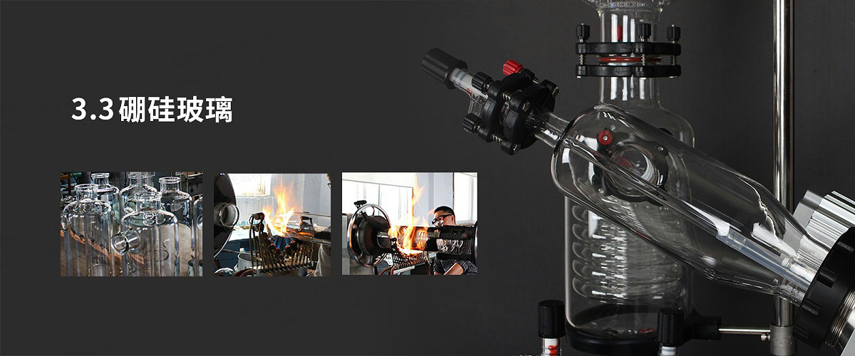 l 3.3硼硅玻璃材质的三通瓶起缓冲作用,可防止旋转瓶中的物料因沸腾进入冷凝器,保证蒸馏正常进行。